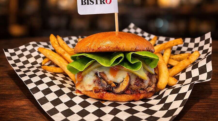 5 oz Nova Scotia beef patty topped with roasted mushrooms and melted Swiss cheese. Featuring Bubba’s-own smokey bacon jam and tangy whiskey BBQ sauce, house-made pickle and leaf lettuce on a toasted Brioche bun. Served with Bubba’s signature coated Maritime fries.
