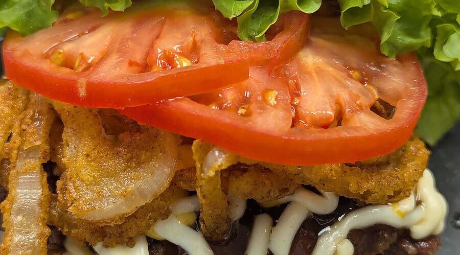 We have a house made double stacked Smash burger covered in our sweet and spicy sauce, house made Cajun onions, mozzarella, cheddar cheese and topp it of with pickles. Served on a garlic toasted roll.