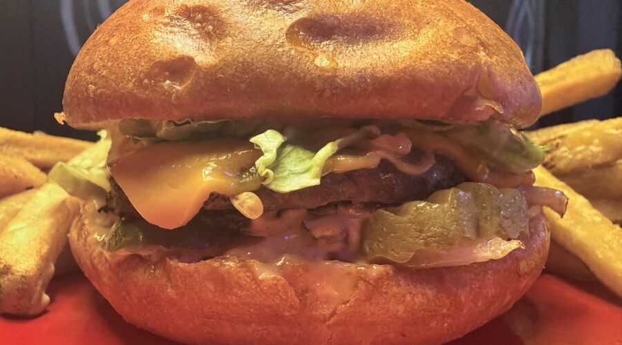 1/4 lb smashed beef patty with fried onions, cheddar cheese, dill pickle, lettuce and Jim’s secret burger sauce. Served with Hand Cut Fries.