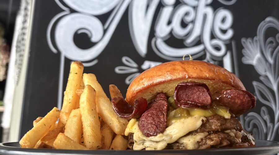 Donair-spiced smash patties, Chris Brothers pepperoni, melted mozzarella, Nova Scotian sweet mustard pickles and Halifax Donair sauce on a garlic-butter toasted brioche bun.
