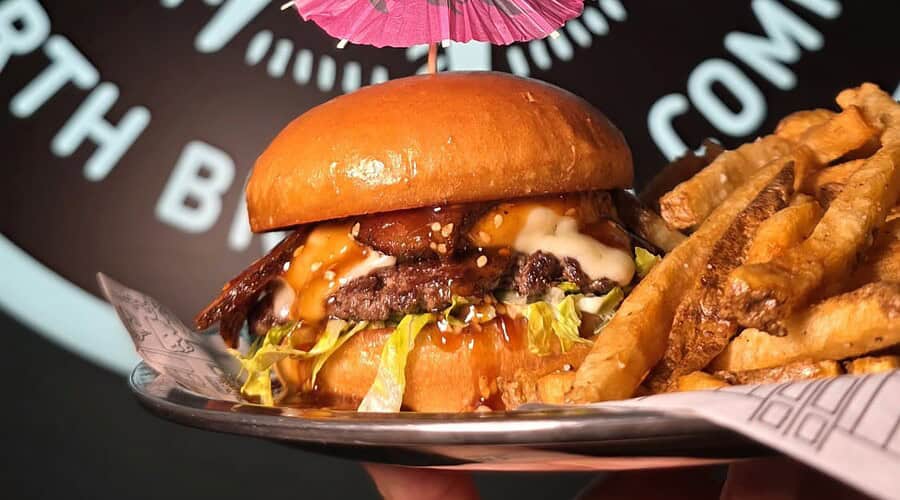 Vessel Meats beef smash patty, smoked bacon, havarti, pineapple, lettuce, roasted garlic aioli, teriyaki bbq sauce.