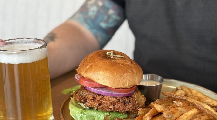 Fried chicken thigh, lucky sauce, lettuce, tomato, red onion, chili oil.